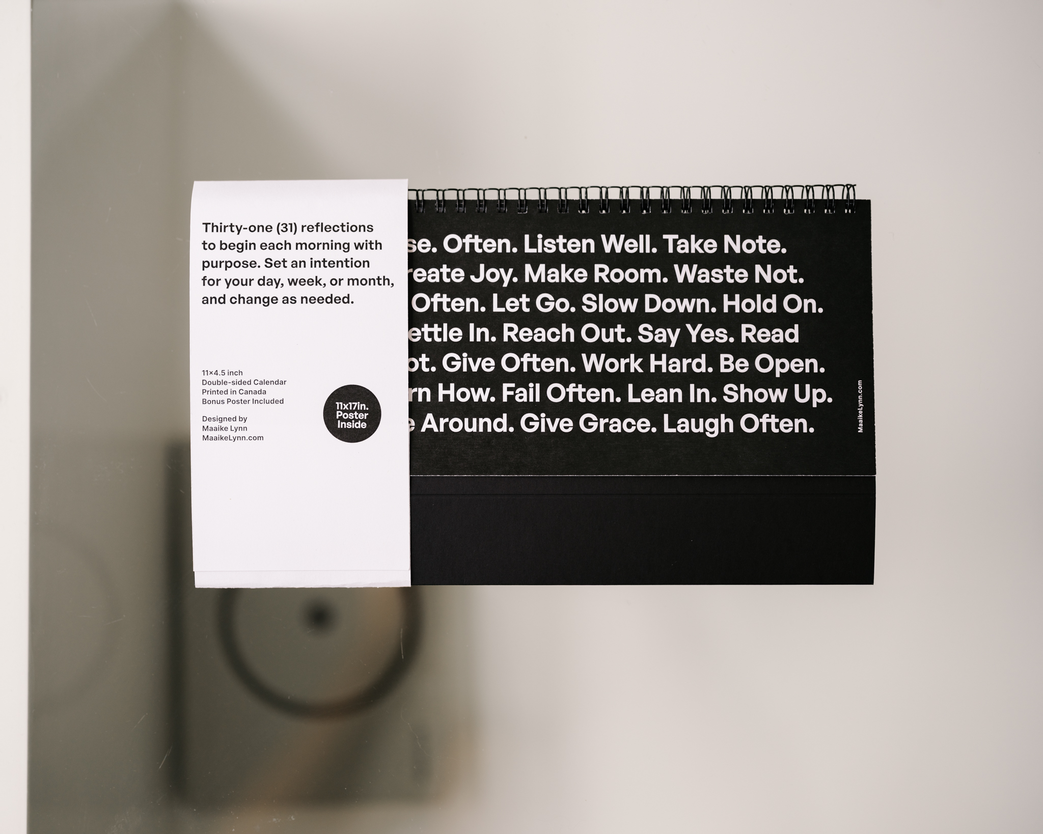 Each calendar comes with a reversible 11 x 17 inch poster.